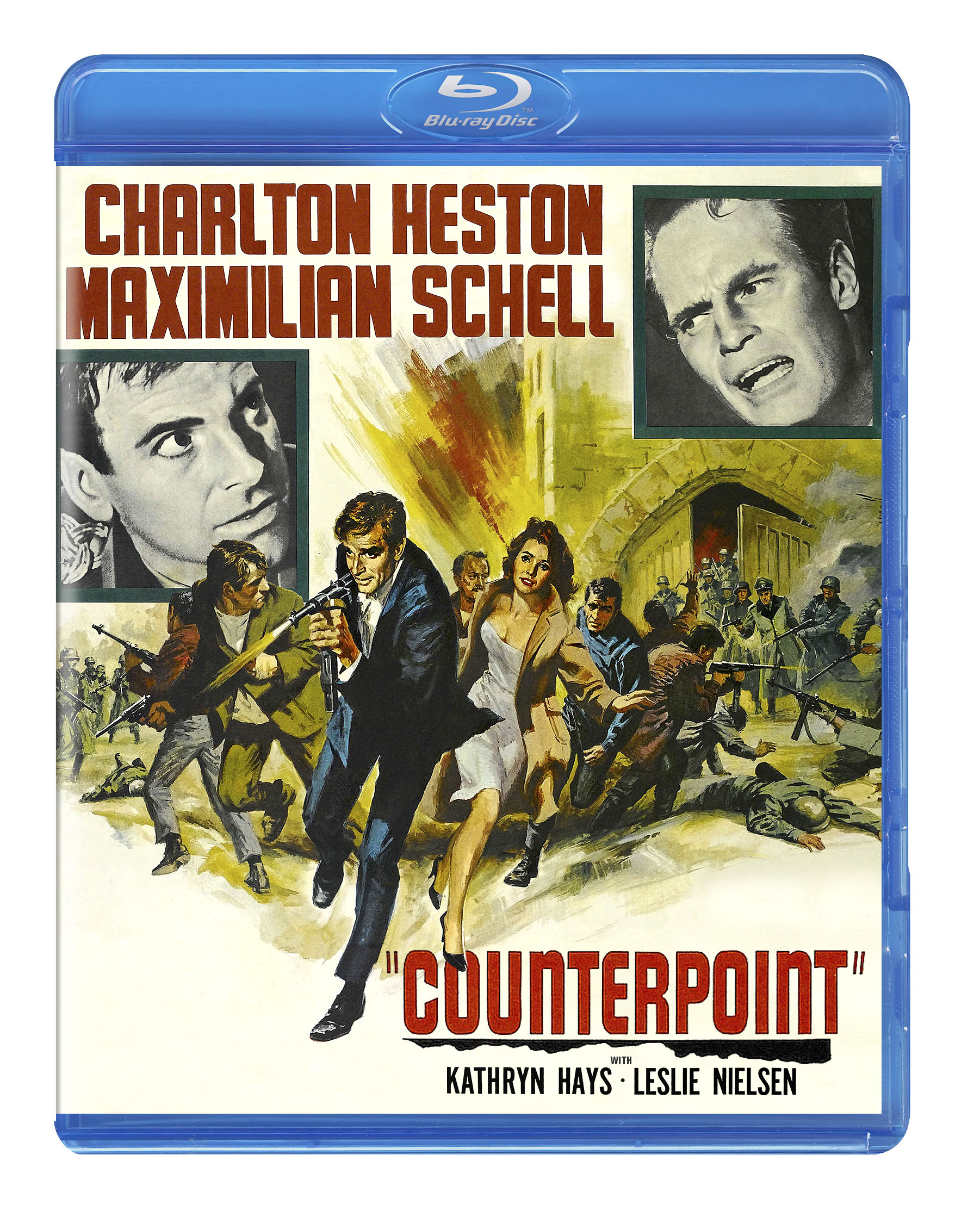 From Ralph Nelson, the acclaimed director of Lilies of the Field, Duel at Diablo, Charly, Soldier Blue and The Wilby Conspiracy, comes the gripping drama Counterpoint, combining the splendor of classical music along with the brutality of the Second World War. Charlton Heston (The War Lord), Maximilian Schell (Judgment at Nuremberg), Kathryn Hays (Ladybug Ladybug) and Leslie Nielsen (Dark Intruder) star in this story of a symphony orchestra on a USO tour of Europe in December of 1944. Hitler’s soldiers attack, capture the musicians and their conductor, Lionel Evans (Heston), and imprison them in a Belgian castle. However, they escape immediate execution because the commanding officer, General Schiller (Schell), has a passion for music. He orders them to prepare a concert for his Nazi comrades, but Evans dreads what will happen when the recital is over. The incomparable Los Angeles Philharmonic performs works by Tchaikovsky, Beethoven, Brahms, Wagner and Schubert in this compelling war film.