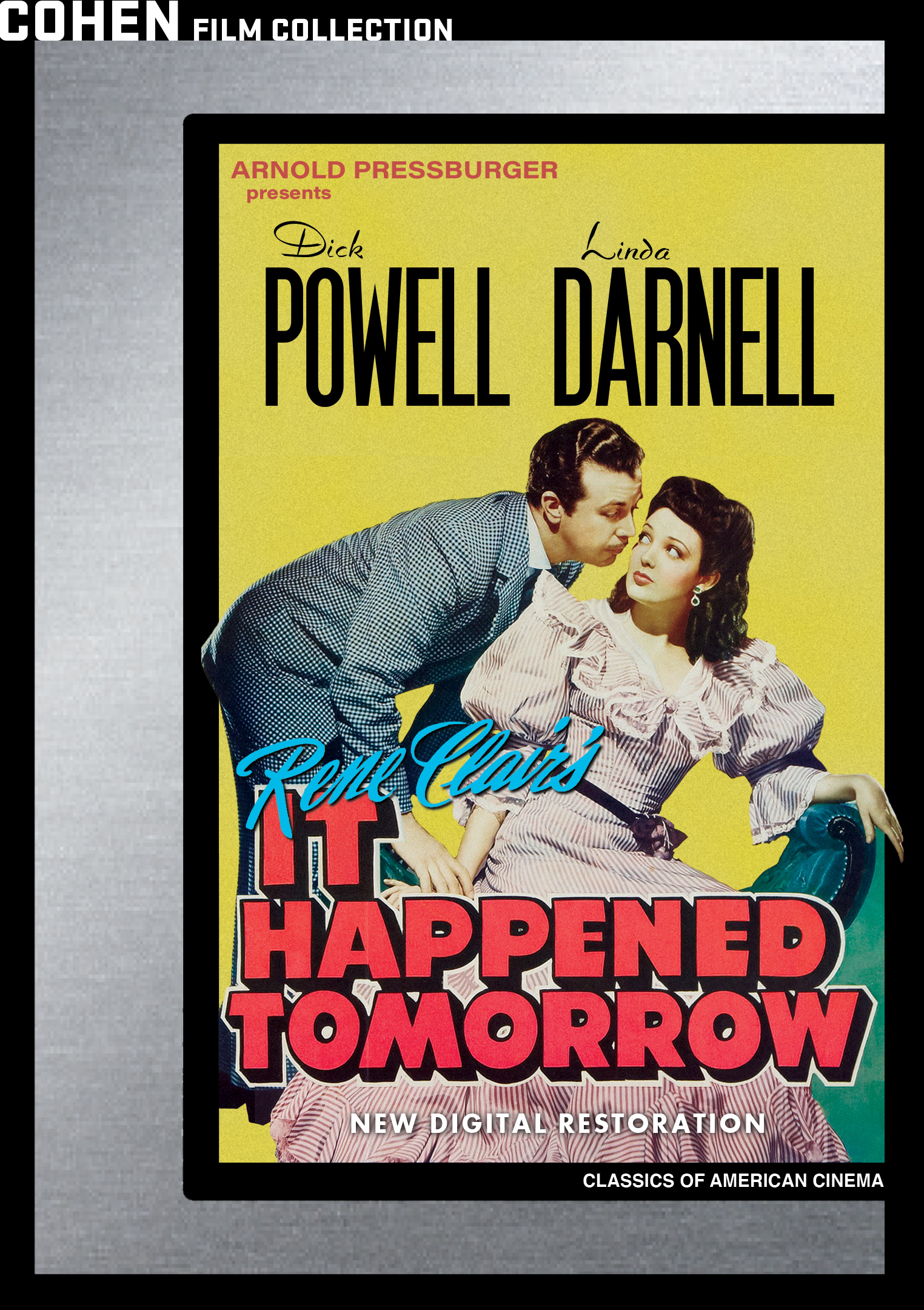What would happen if someone could get tomorrow’s newspaper headlines today? This charming period comedy tells the story of a reporter (Dick Powell) who wishes he could scoop his colleagues by knowing about events before they occur. When a mysterious old man gives him the news a day in advance, his life is turned upside down. Racing to prevent a headline predicting his own death, he gets mixed up with a beautiful fortune teller (Linda Darnell) and her overprotective uncle (Jack Oakie). It Happened Tomorrow was acclaimed French director René Clair’s (Beauty of the Devil) follow up to his equally enchanting I Married a Witch, both made during his exile in Hollywood during World War II. Clair’s famous whimsical style is evident in this cautionary tale; be careful—what you wish for might come true. This sparkling black and white film was restored from a 4K scan.