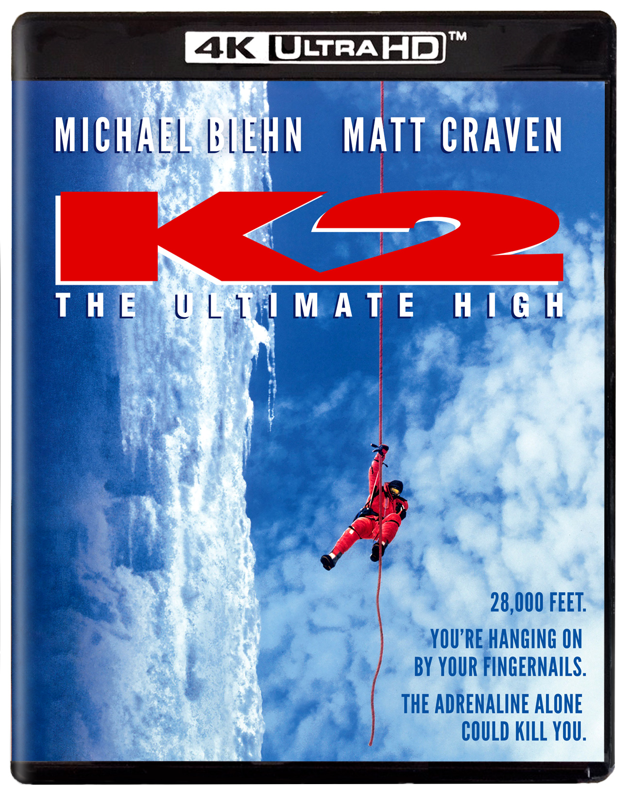 It is called “The Savage Mountain.” Many have perished trying to reach its ice-torn summit. Now K2 waits to claim the lives of two Americans whose only hope lies in the tenuous ties of their own friendship. Attorney Taylor Brooks (Michael Biehn, The Terminator, Rampage) and physics professor Harold Jamison (Matt Craven, Indian Summer, Crimson Tide) are unlikely friends bound by the same, all-consuming dream: to climb K2. Their opportunity comes when they meet a legendary mountaineer who is assembling an international team for a K2 expedition. Soon they are headed for northern Pakistan and the most perilous mountain in the world, unaware that their survival rests on the one thing they can’t depend on—their loyalty to each other. Featuring some of the most spectacular mountain-climbing footage ever captured on film, director Franc Roddam’s (Quadrophenia, The Lords of Discipline) death-defying motion picture goes to the absolute limits of human adventure.