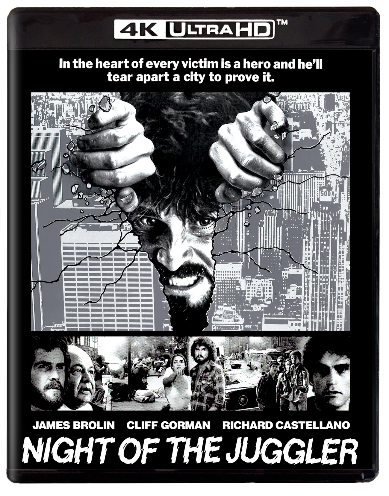 The grit and intensity of late-1970s New York City is depicted in stark detail in this relentlessly action-packed cult classic. Twenty-four hours of nerve-jangling tension and suspense begin when a twisted psychotic (Cliff Gorman, Cops and Robbers, All That Jazz) kidnaps a teenaged girl, mistaking her for the daughter of a wealthy real estate developer. Her determined father (James Brolin, The Car, The Amityville Horror), a hard-hitting ex-cop, doggedly pursues them through New York’s seamy streets, decaying, burned-out Bronx tenements, and the grimy subterranean corridors beneath the city itself. Based on the novel by William P. McGivern (The Big Heat, Odds Against Tomorrow) and co-starring Richard S. Castellano (The Godfather), Julie Carmen (In the Mouth of Madness), Dan Hedaya (Blood Simple) and Mandy Patinkin (The Princess Bride), Night of the Juggler is a thrilling example of no-holds-barred, pure adrenaline-fueled filmmaking. The film’s original director Sidney J. Furie (The Ipcress File, The Appaloosa) was replaced by Robert Butler (Up the Creek, Turbulence) a few weeks into production.