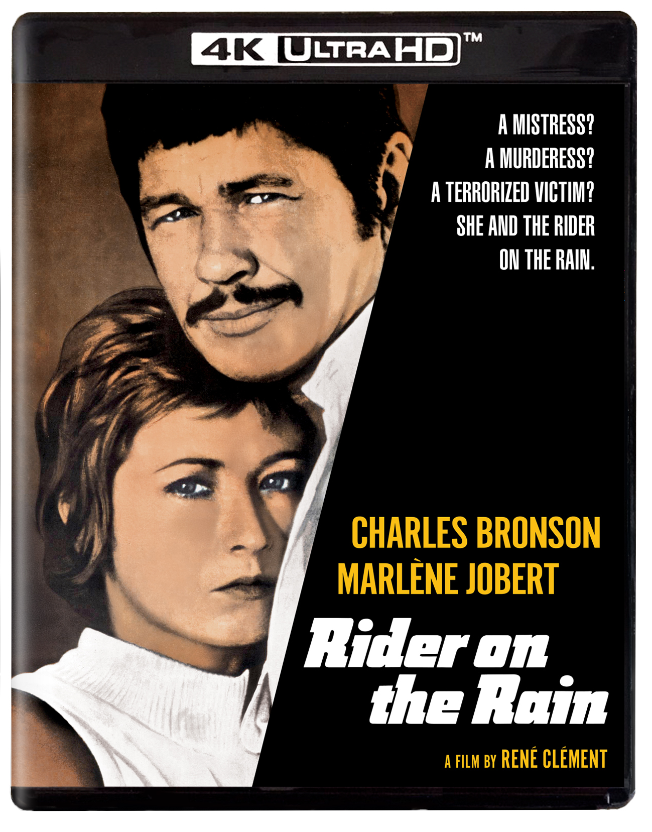 From René Clément, the legendary director of Forbidden Games, Joy House and Is Paris Burning? comes this stylish thriller starring screen legend Charles Bronson (Violent City, Death Wish). When a beautiful young woman (Marlène Jobert, Last Known Address, Mad Enough to Kill) in the South of France is stalked and then assaulted by a mysterious masked assailant, she kills the man in self-defense, and in a moment of misjudgment, she dumps his corpse over a cliff into the sea instead of calling the police. Trying to return to her life before the attack, her world is turned upside down when an American investigator (Bronson) shows up and, to her horror, seems to know everything. Rider on the Rain showcases fine performances both from Bronson, whose mix of sympathy and aggression perfectly defines his character, and Jobert, who gains audience empathy with her touch of sexuality mixed with an innate, almost childlike innocence. Featuring a haunting and beautiful score by Francis Lai (Love Story) with wonderful supporting performances by Gabriele Tinti (Death Occurred Last Night) and Jill Ireland (The Mechanic).