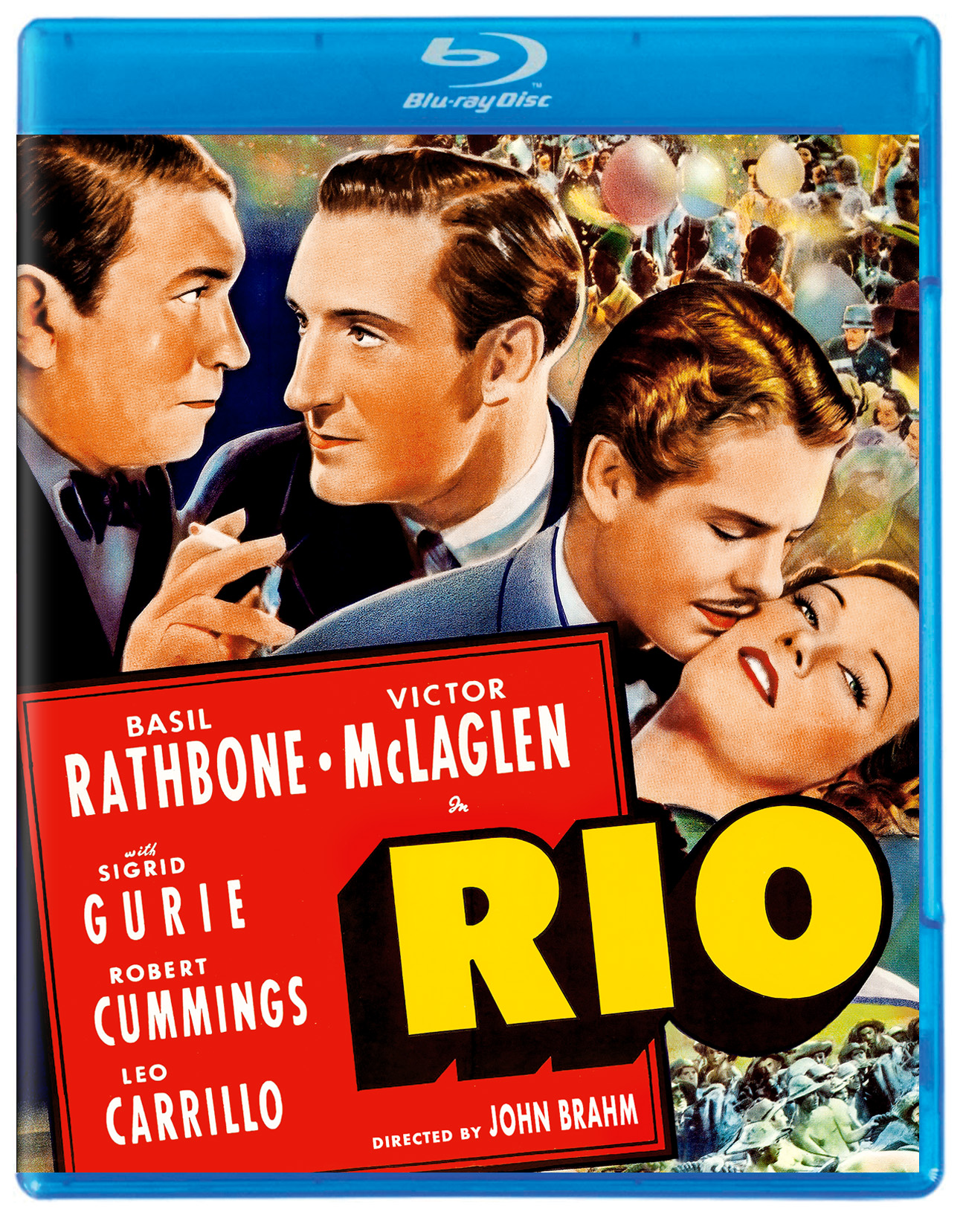 From director John Brahm, the visionary filmmaker behind The Undying Monster, The Lodger, Hangover Square and Singapore, comes a journey into the dark and dangerous corners of Rio, starring screen greats Basil Rathbone (If I Were King) and Victor McLaglen (Murder at the Vanities). Crooked Parisian financier Paul Reynard (Rathbone) is arrested for bank fraud and sentenced to a penal colony off the coast of South America. His wife Irene (Sigrid Gurie, Algiers) and faithful servant Dirk (McLaglen) travel to Rio de Janeiro to arrange for Paul’s escape. But once they’ve landed in the Brazilian capital, Irene falls in love with an American engineer (Robert Cummings, The Last Train from Madrid). After his escape, Paul realizes that he’s lost his wife forever to a better man, and seeks revenge. From a story by Jean Negulesco (Road House), the noir-drenched adventure Rio also stars Leo Carrillo (Four Frightened People).