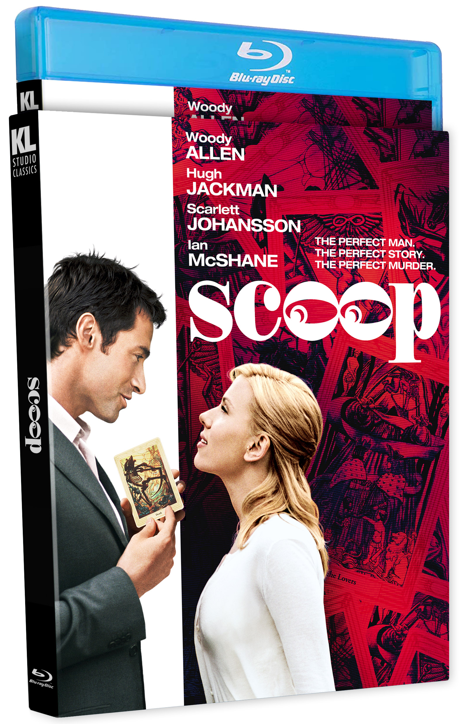 Scarlett Johansson (Match Point) and Hugh Jackman (X-Men) star in this hilariously twisted tale of murder and mystery by the great Woody Allen (Annie Hall, Vicky Christina Barcelona). Sondra Pransky (Johansson) is an American journalism student visiting friends in London. While watching a stage performance by another American, magician Sid Waterman (Allen), a.k.a. Splendini, Sondra is shocked to find herself able to see and hear the recently departed U.K. journalist Joe Strombel (Ian McShane, John Wick). From beyond, Joe gives her a hot tip, on the identity of the “Tarot Card Killer,” who’s still at-large in London. Sondra immediately starts chasing the big story, enlisting the aid of a very reluctant Sid. Her chase leads right to a handsome British aristocrat, Peter Lyman (Jackman), with whom she falls head-over-heels. Soon, Sondra finds that the romance of her lifetime may very well be the dangerous Scoop for which she’s in hot pursuit.