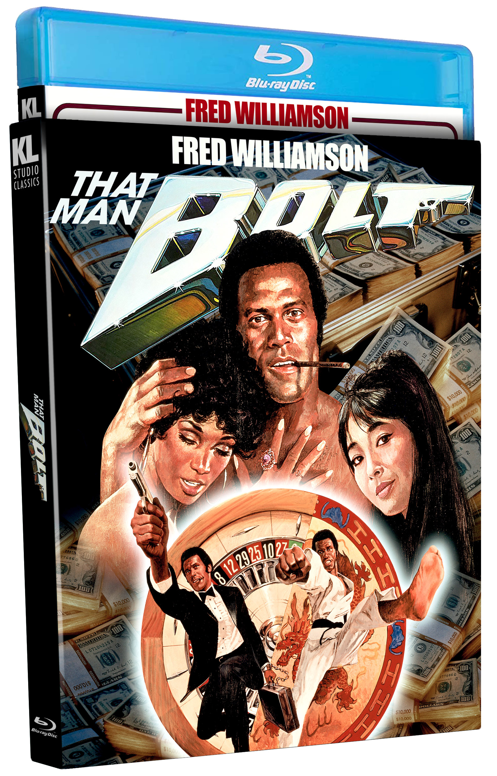 Action legend Fred Williamson (Hammer, Black Caesar, Original Gangstas) is That Man Bolt—the highest-flying, toughest-talking, hardest-hitting dude the world has ever faced. When you need a real man of steel, martial arts expert Jefferson Bolt is the high-priced pick for the job. His latest client, a mysterious British man with a cool million in cash, has an offer Bolt can’t refuse: transport his money from Hong Kong to Mexico City or be sent to prison on phony charges. But halfway to his destination, Bolt discovers that the money is funny, and he’s been set up to take the fall. With a price on his head and nowhere to turn, Bolt sets out to destroy the crime syndicate that dared to take him on. From high-stakes danger in glitzy Las Vegas to high-speed chases through gritty Los Angeles, Bolt strikes back again and again with an explosive battle culminating in a fiery finish. Co-directed by Henry Levin (Kiss the Girls and Make Them Die, Murderers’ Row) and David Lowell Rich (A Lovely Way to Die, The Concorde… Airport ’79).