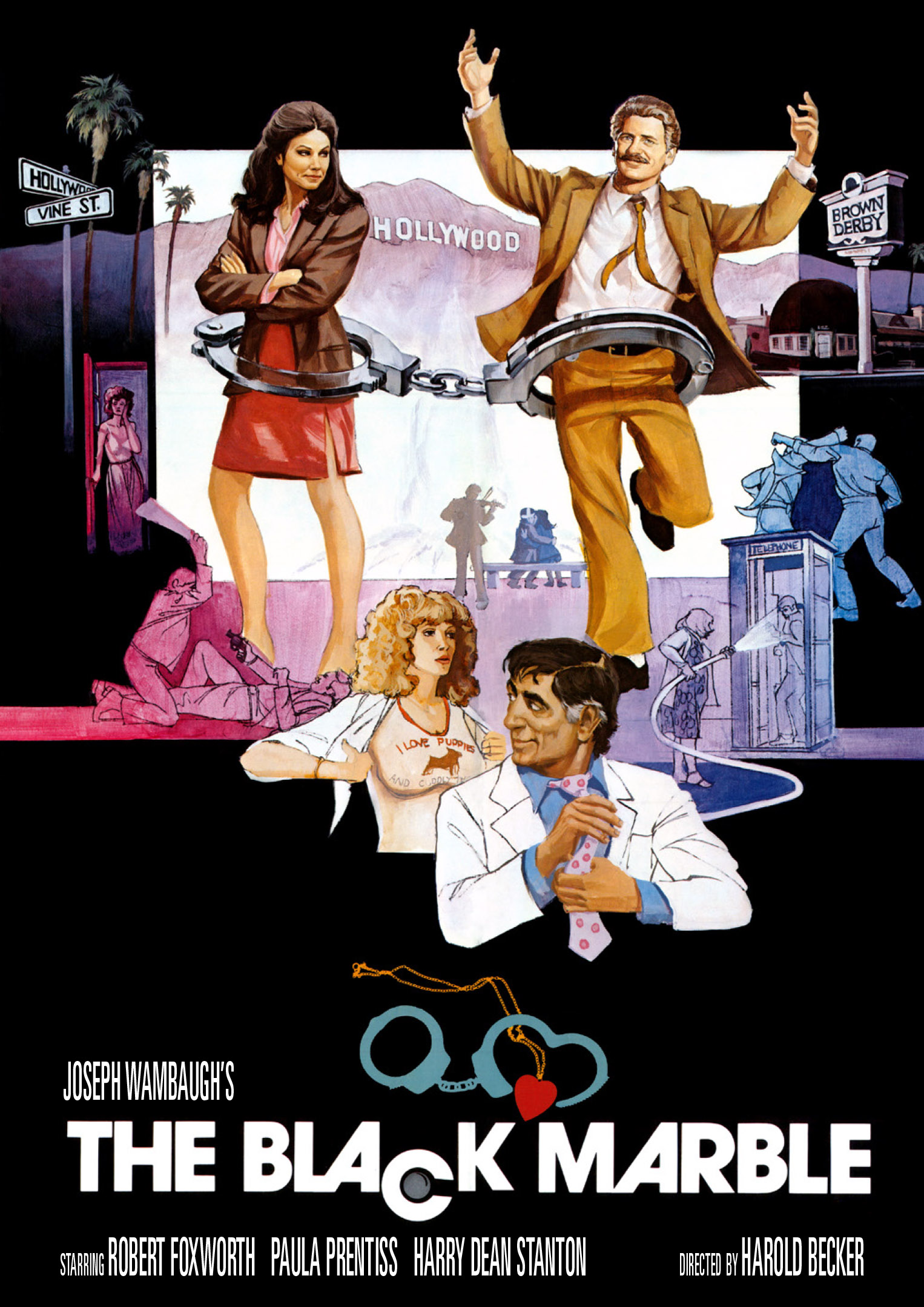 Sergeant A.M. Valnikov (Robert Foxworth, Prophecy) is a hard-drinking homicide detective transferred to Hollywood’s robbery division. His new partner Natalie Zimmerman (Paula Prentiss, The Parallax View) is a hard-nosed divorcee with no patience for burnt-out cops. And “Terrier King” Philo Skinner (Harry Dean Stanton, Paris, Texas) is a desperate dog groomer who has kidnapped a champion schnauzer for $84,000 in ransom. Together they will track this case through a town of tarnished dreams where crime is never perfect, love is often blind and some people always seem to pick The Black Marble. Barbara Babcock (Chosen Survivors) and Judy Landers (Armed and Dangerous) co-star in this quirky comedy-drama directed by Harold Becker (Sea of Love, Malice) from a screenplay by Joseph Wambaugh (The Choirboys, The Onion Field) based on his best-selling novel, and featuring a score by legendary composer Maurice Jarre (Doctor Zhivago, Lawrence of Arabia) and special appearances by Christopher Lloyd, Michael Dudikoff and James Woods.