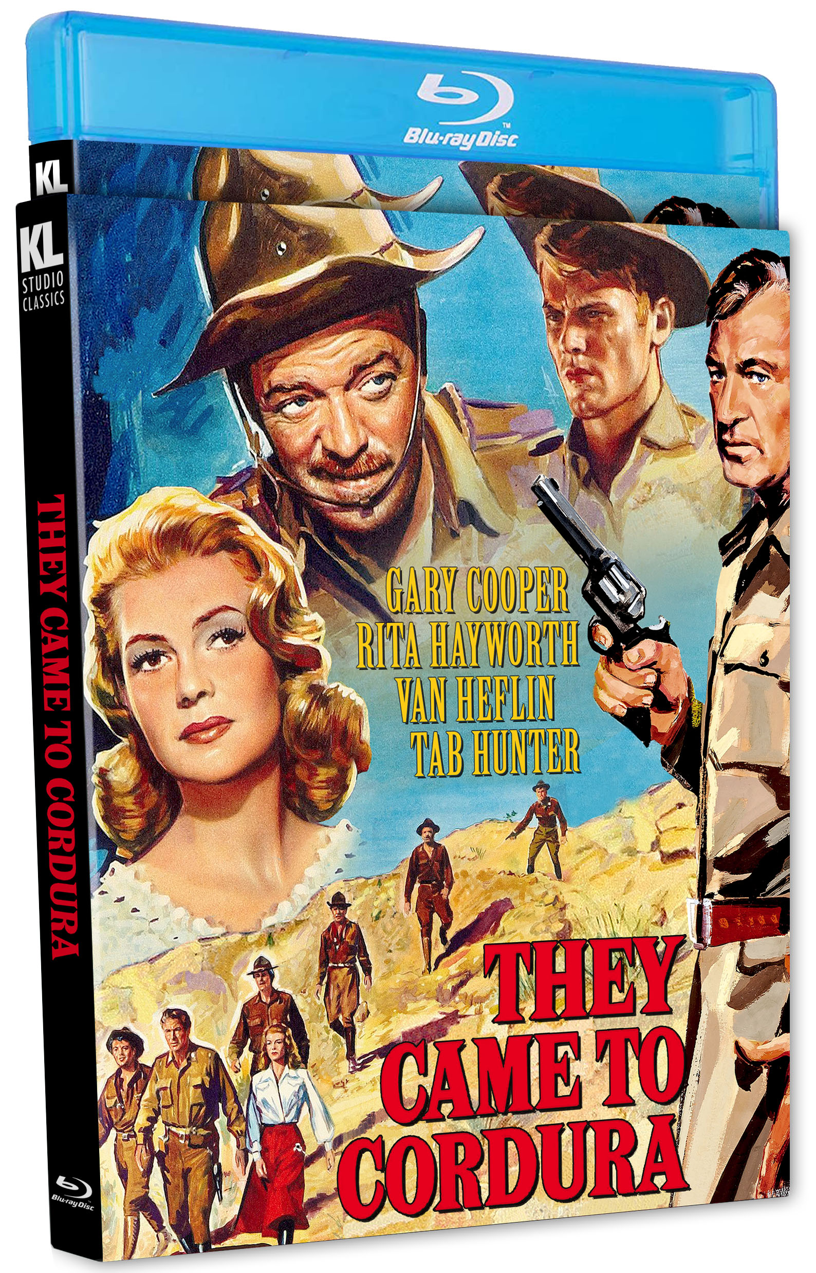 Set against the backdrop of the 1916 war against Pancho Villa, They Came to Cordura stars screen icon Gary Cooper (High Noon) as Thomas Thorn, a career Army officer given the humiliating task of leading five Medal of Honor candidates to the military base of Cordura, Texas. Branded a coward during battle, Thorn hopes to learn what these men, each of whom performed heroically under fire, possess which he lacks. But as the grueling journey through the desert progresses, the “heroes” panic, attempting murder and mutiny as the quest for survival reveals their true characters. The brilliant Rita Hayworth (The Lady from Shanghai) co-stars as the seventh member of the group, an American expatriate who gradually comes to appreciate Thorn’s quiet integrity as he leads his mutinous charges through a desperate odyssey. Filled with both exciting action and finely tuned drama, their treacherous trek to the town of Cordura (which is also the Spanish word for courage) is a rugged and riveting tale of bravery far more enduring than the fleeting heroics of battle. Co-starring Van Heflin (Shane) and Tab Hunter (Damn Yankees) under the stirring direction of Robert Rossen (All the King’s Men, The Hustler).