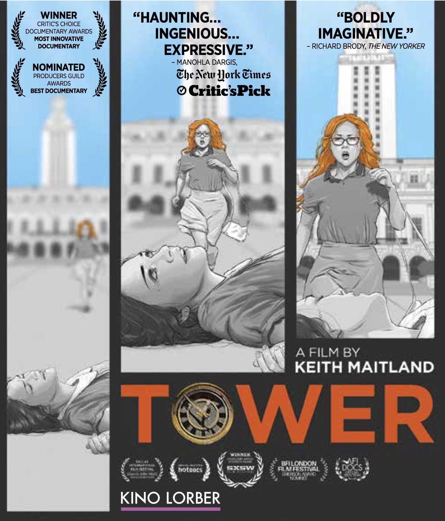 "Words can't do justice to the singular power of Keith Maitland’s documentary Tower, a you-are-there reconstruction of the harrowing 1966 mass shooting at the University of Texas at Austin...You might not see a more emotionally shattering film this year." -Bilge Ebiri, The Village Voice