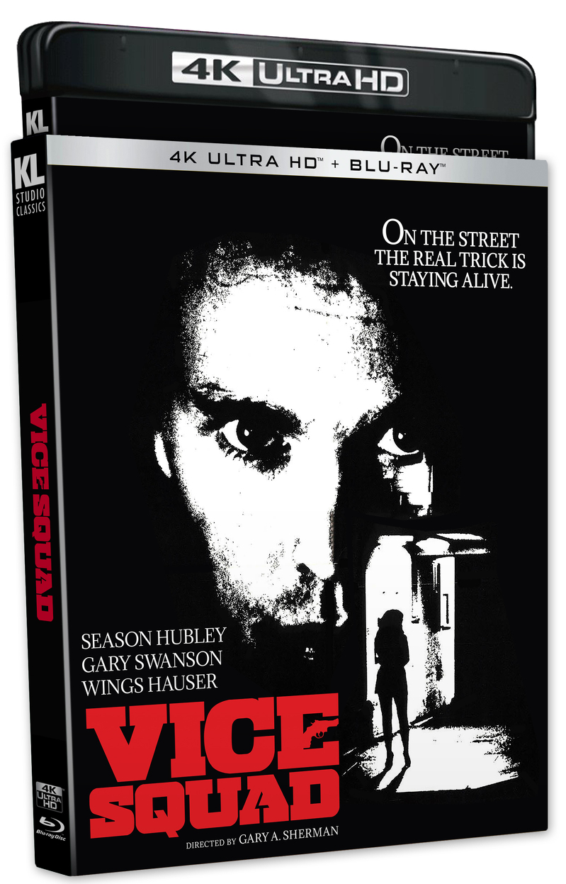 Season Hubley (Hardcore) stars as Princess, a loving single mom by day, a Hollywood prostitute by night. But when a volatile cop (Gary Swanson, The Bone Collector) uses her to trap a sadistic killer, Princess becomes the prey of a psychotic pimp named Ramrod (a mind-blowing, take-no-prisoners performance by Wings Hauser, The Siege of Firebase Gloria). Tonight, the neon jungle of Los Angeles will explode in an orgy of vengeance and violence. And the only outlaws more desperate than the hustlers and the freaks who rule the streets are the Vice Squad. “You may think you’ve heard of every sickness and perversion movies like to titter about,” wrote Rex Reed in The New York Daily News, “but there are quite a few in Vice Squad you’ve never dreamed possible!” Scarface’s Pepe Serna and original MTV VJ Nina Blackwood and Beverly Todd (Lean on Me) co-star in this vicious ’80s action smash from the creator of the “schoolgirl hooker” hit Angel and the director of Dead & Buried and Wanted: Dead or Alive.