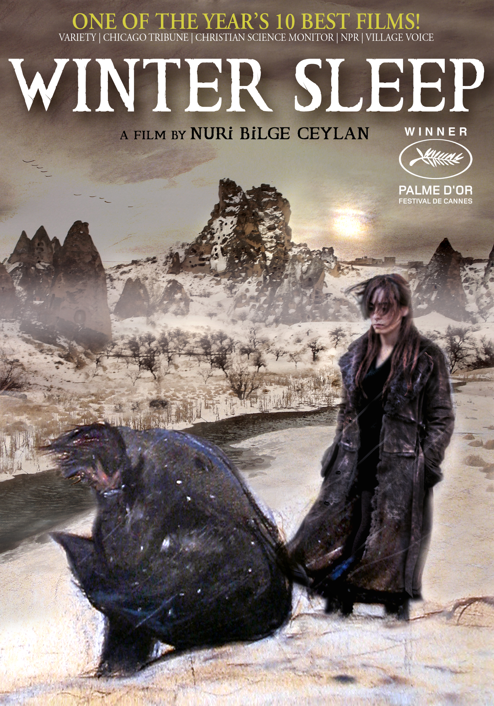 Directed by the Turkish cinema master, Nuri Bilge Ceylan, this enthralling, brilliantly photographed film won the top prize at the 2014 Cannes Film Festival and was Turkey's entrant in the Oscar Best Foreign Language Film category. Ceylan's Once Upon a Time in Anatolia had shared the top prize at Cannes in 2011. Set in the amazingly picturesque Cappadocia region in central Turkey, the exterior scenes strikingly capture the remarkable topography a World Heritage site while the interior scenes bring Rembrandt to mind. A retired actor has inherited a small hotel where he is ensconced with his recently divorced sister, his much younger and growingly discontented wife. A seemingly trivial incident sets in motion a drama of personalities at odds with each other and the paths their lives have taken. The superb cast of actors quickly takes your attention and won't let it go.